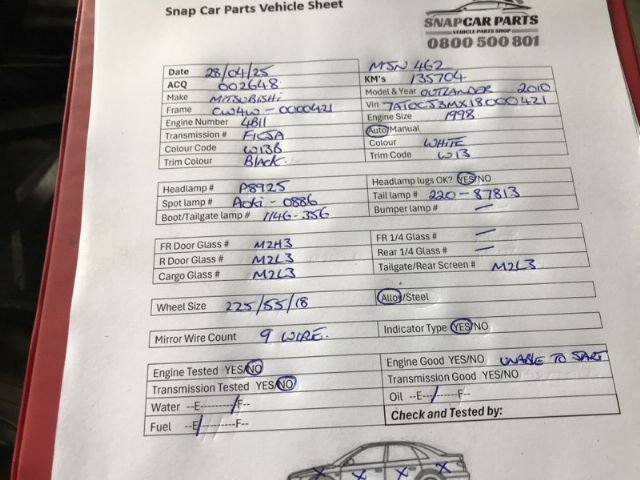 Parts listed below have been removed from the vehicle and are ready for purchase