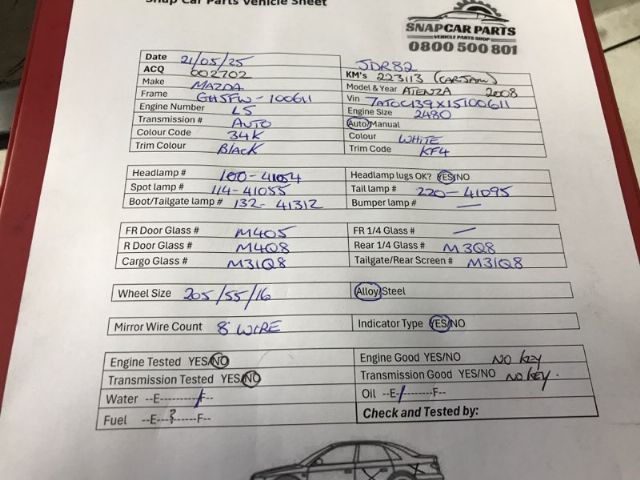 Parts listed below have been removed from the vehicle and are ready for purchase